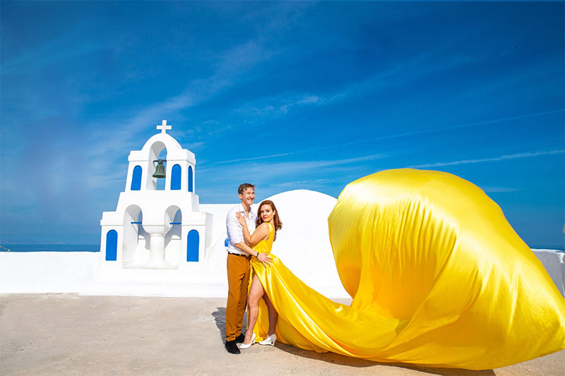 In Santorini Flying Dress we specialize in providing unique and unforgettable experiences with our photo sessions. With our team of experienced, passionate and talented professionals, we deliver the highest quality service to our clients. We take great pride in offering a once-in-a-lifetime experience at the stunning landscapes of Santorini in a flying dress, while capturing unforgettable memories that will last a lifetime. Our tours are tailored to meet the needs and preferences of each individual, ensuring a personalized and seamless experience.